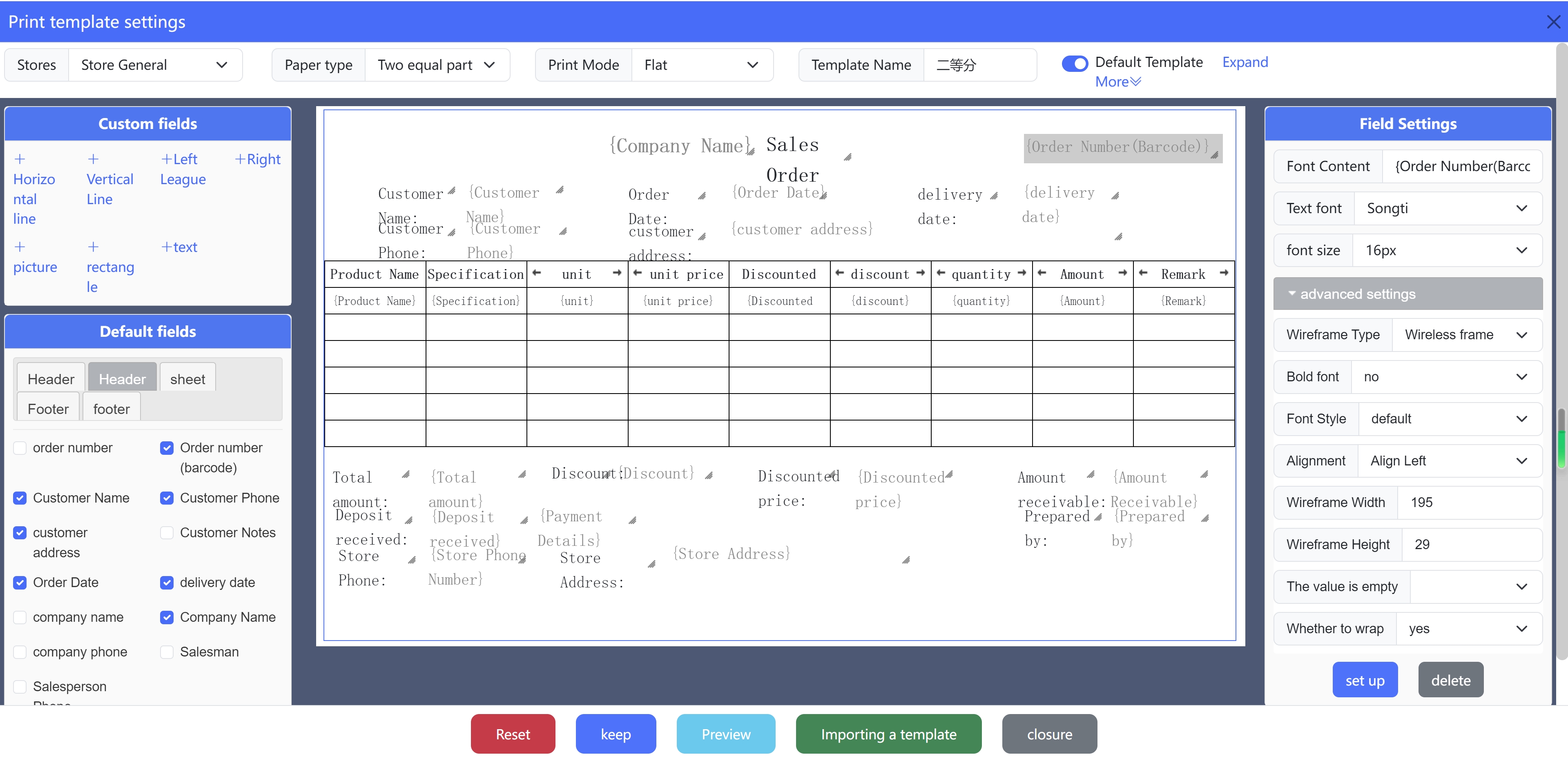 Supports custom design of print templates, developed based on the Lodop printing component